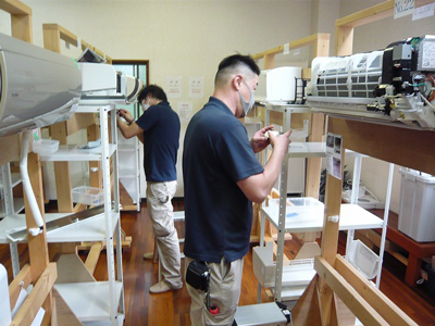 大分県から加藤様、大阪府から大牟田様など遠方からかなりお越しになり、普段さわれないエアコンを一生懸命勉強しておりました。